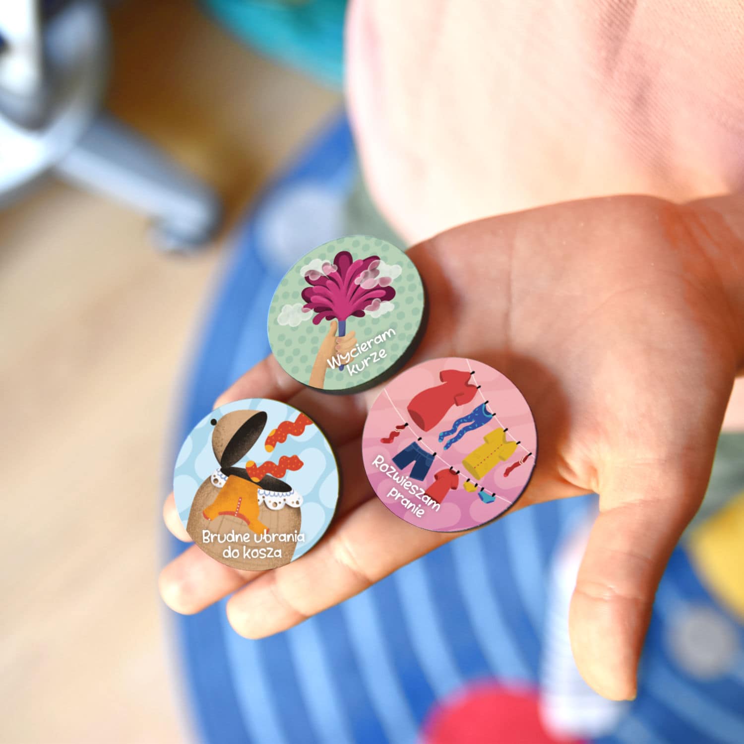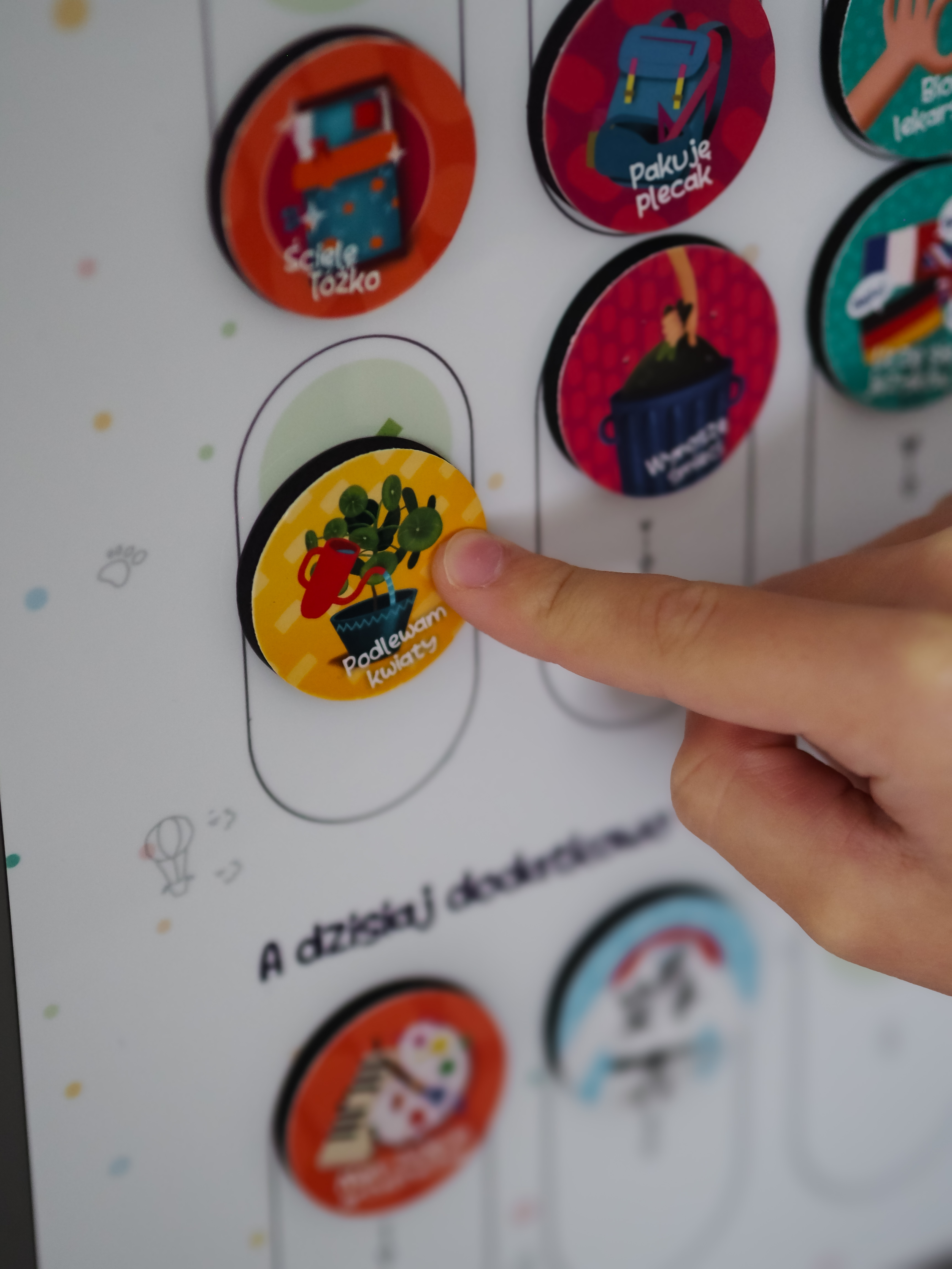 Wypukłe magnesy o średnicy 37mm z wyjątkowymi ilustracjami Agaty Dubaniowskiej spowodują, że nawet starsze dzieci nie przejdą obok naszego Planera Obowiązków obojętnie 🙂